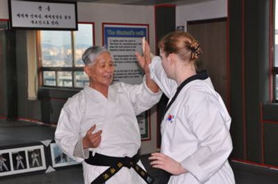 His two main masters during his time at the University were Grand Master Lee Sun-Jang (Former World Champion in Sparring) & Grand Master Lee Kyu Hyung who was at the time the director of the Korean National Demo Team. Grand Master Lee Kyu Hyung later became President of Kukkiwon, World Tae Kwon Do Federation (WTF).